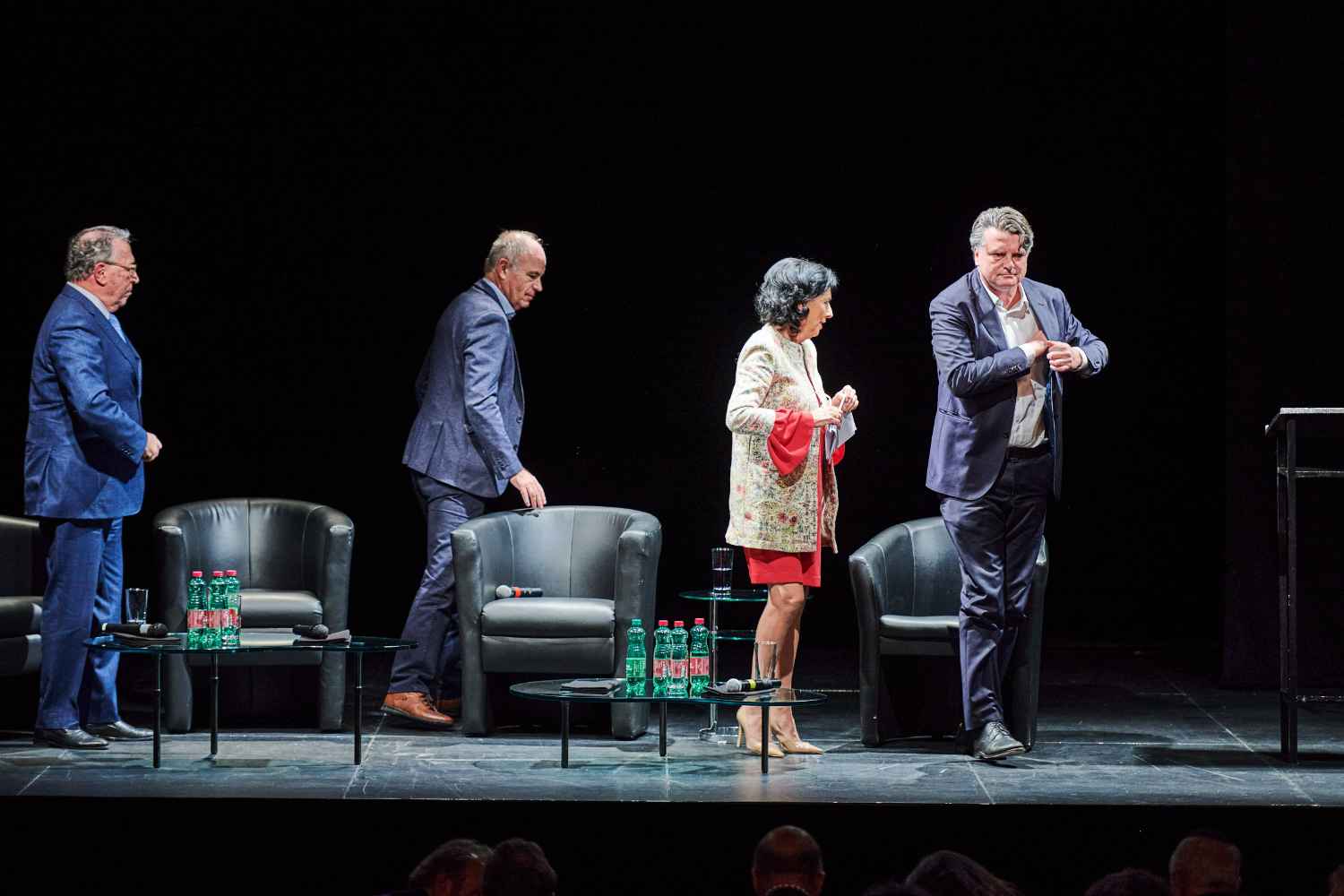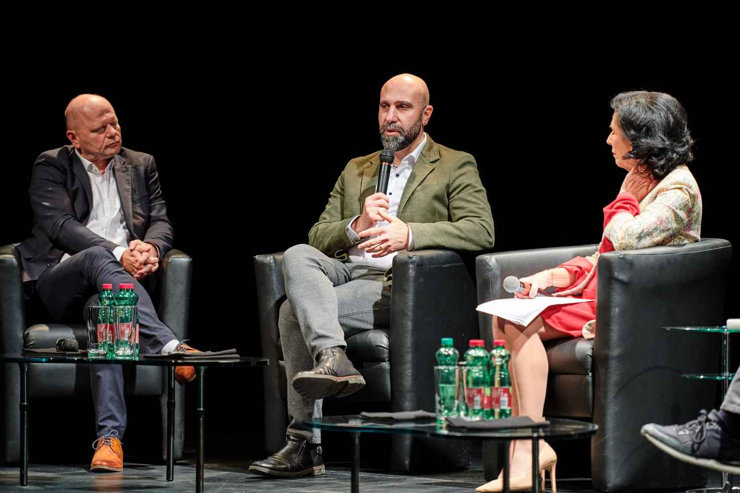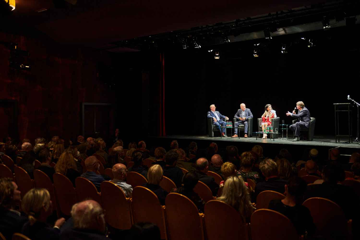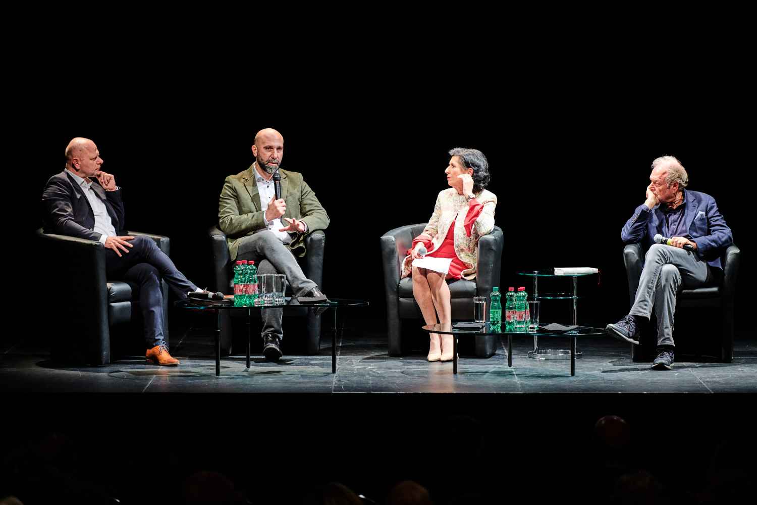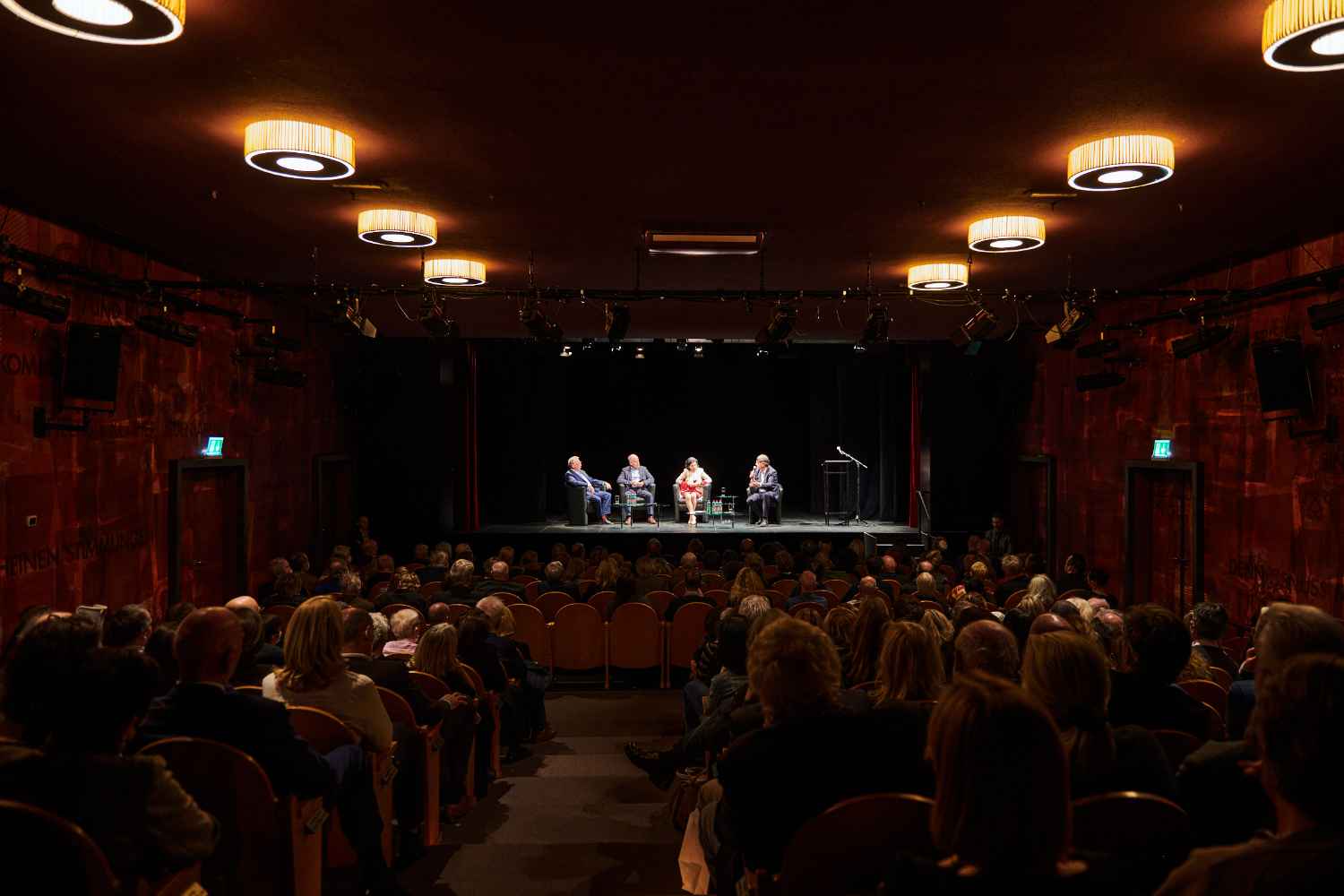 Auf dem Podium: Harry Bergmann, Ahmad Mansour, Doron Rabinovici, Esther Schapira, Robert Schindel, Ben Segenreich und Christian Ultsch. Moderation: Danielle Spera.