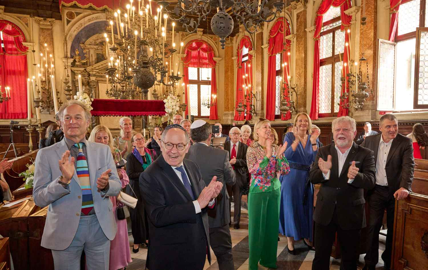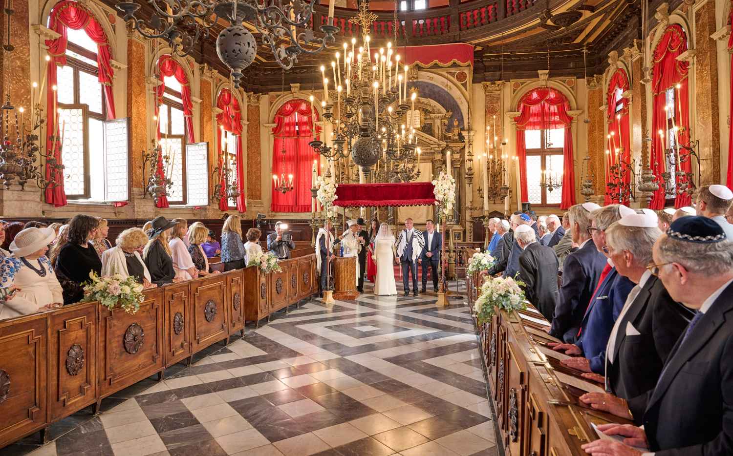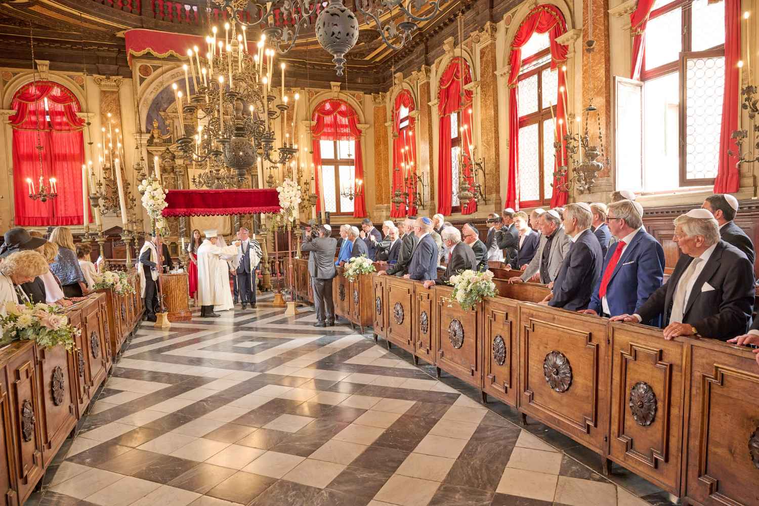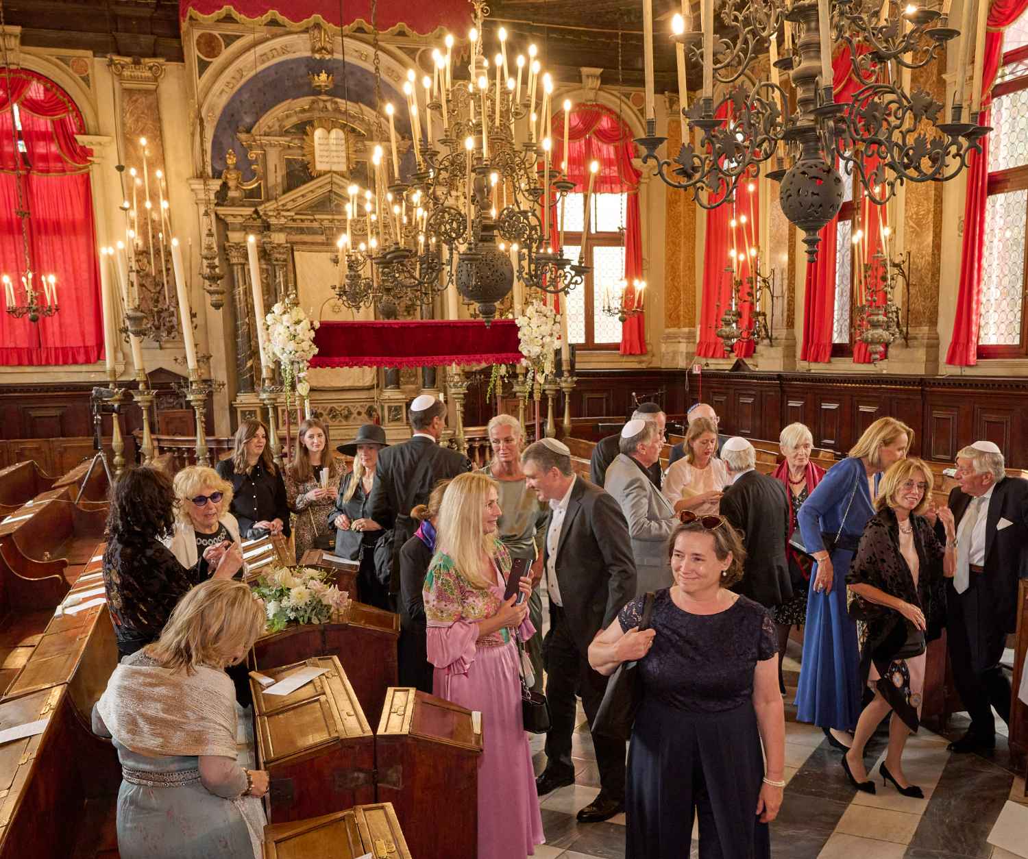 Anita Ammersfeld und Erwin Javor wurden nach 33 Jahren standesamtlicher Ehe in der Spanischen Synagoge im Venediger Ghetto nun auch noch „richtig“ getraut. Das Fest danach fand im eleganten Sala Stucchi im Hotel Excelsior am Lido statt. Eine bunte wie hochkarätige und gut gelaunte Gästeschar aus Israel, Österreich, den USA, Kanada und der Schweiz feierte das Paar ausgelassen, fröhlich und herzlich bis in die frühen Morgenstunden.