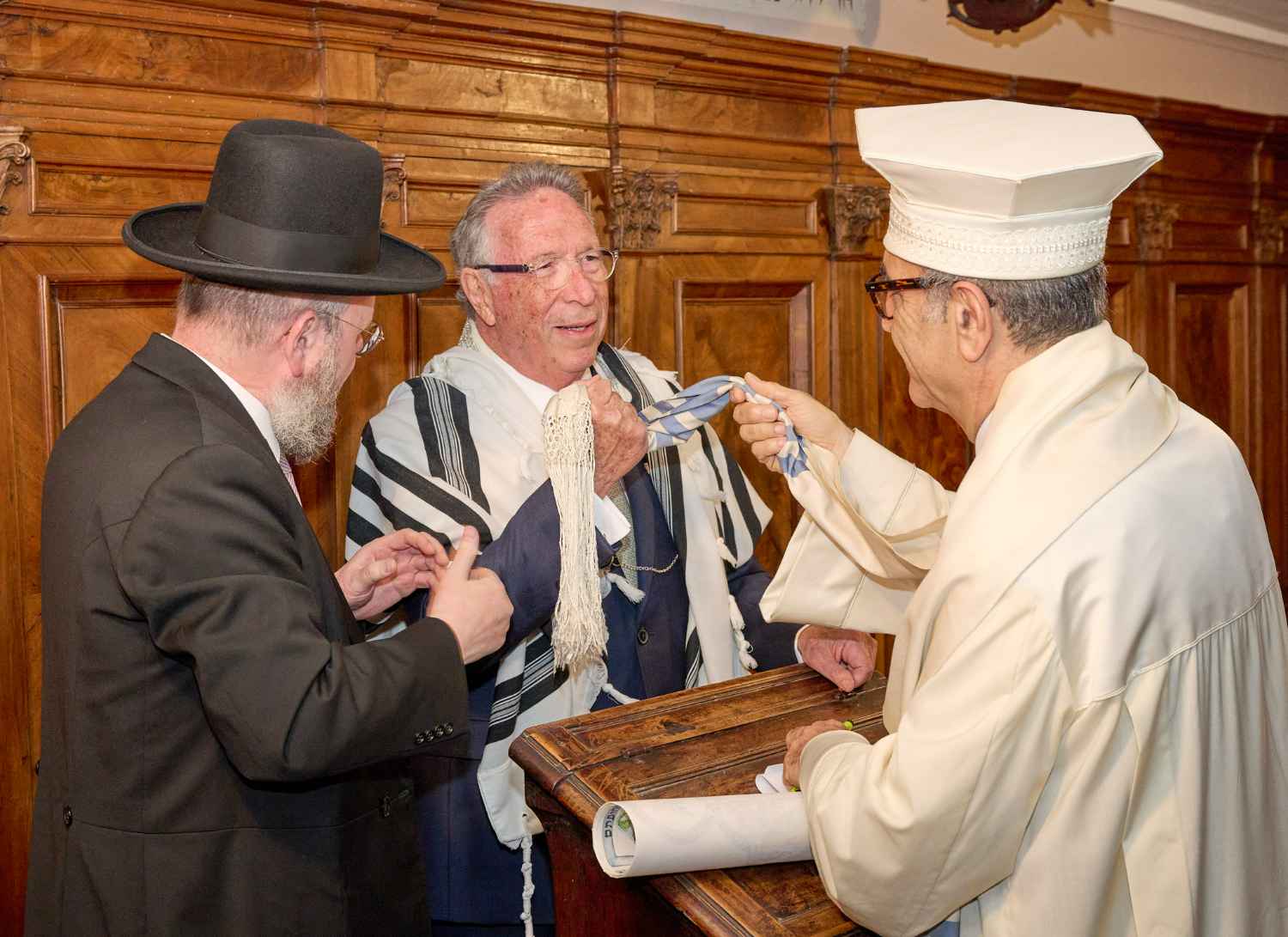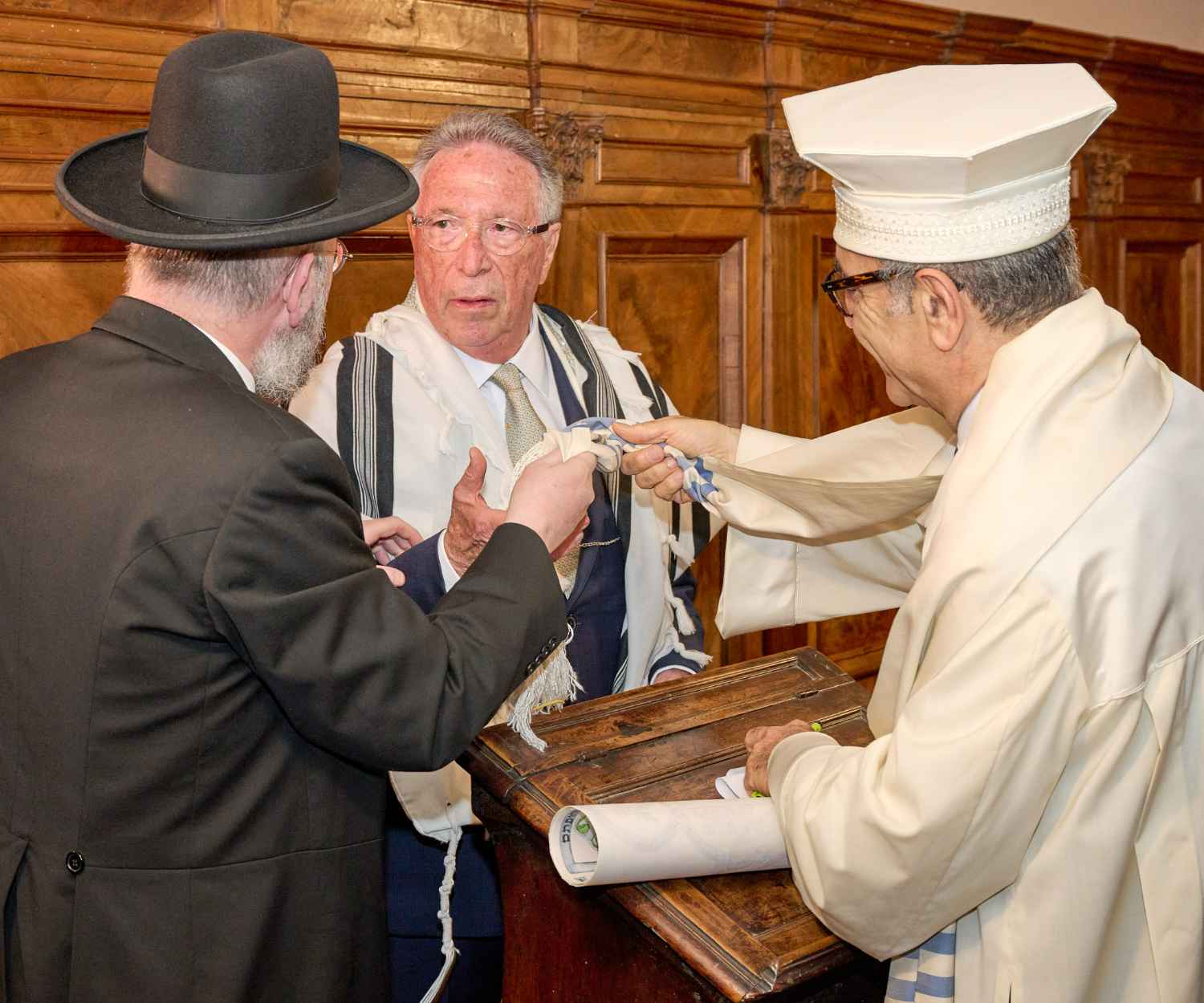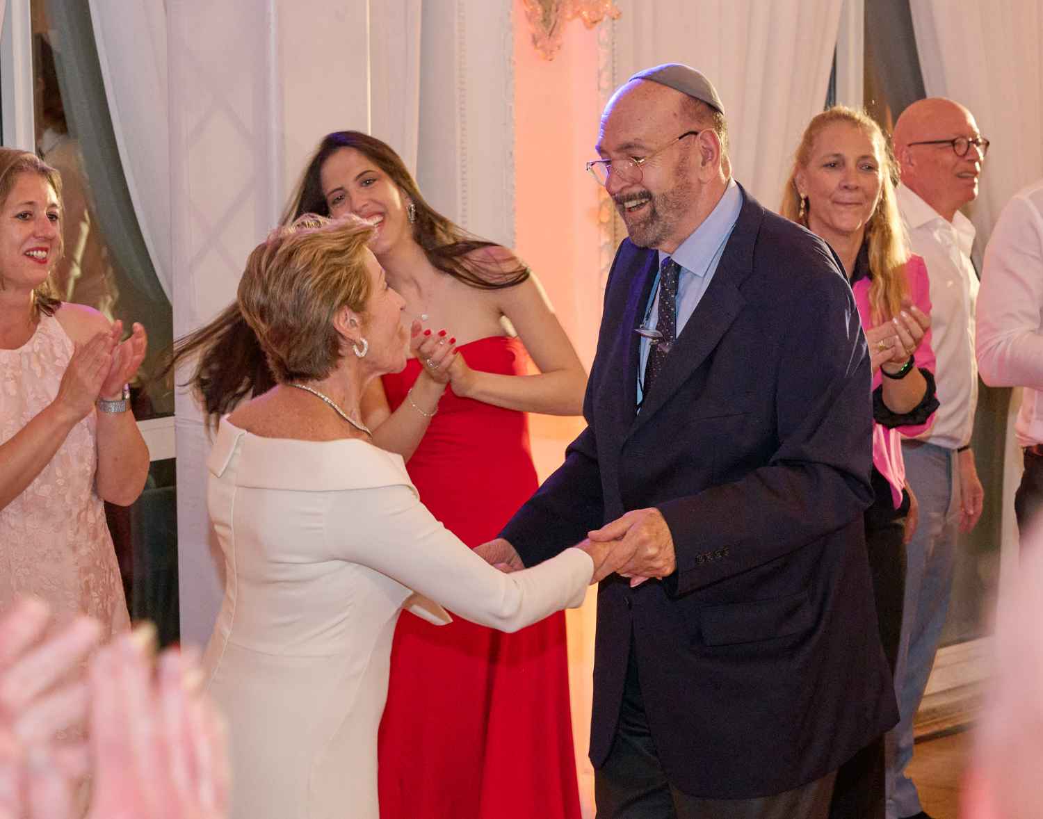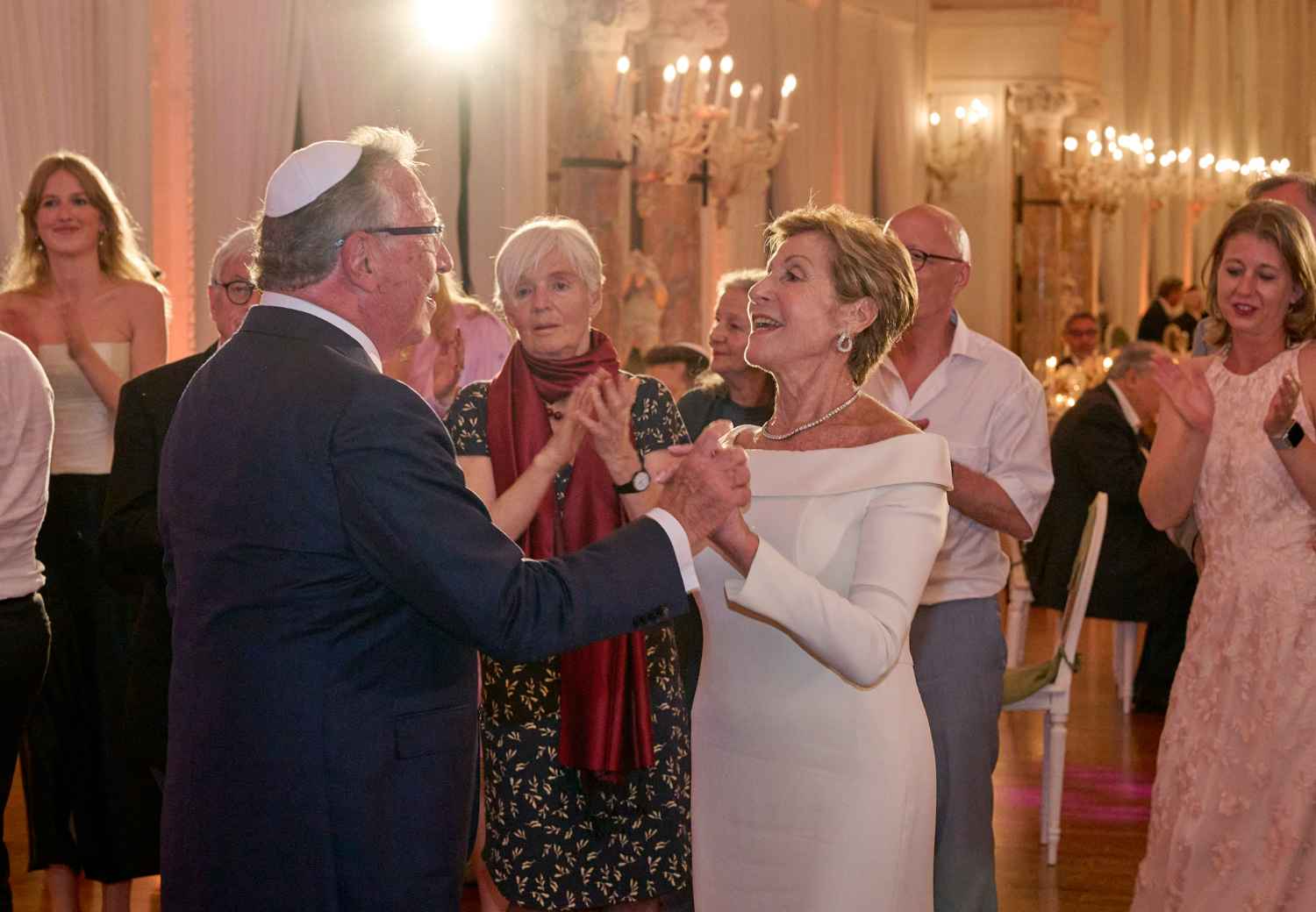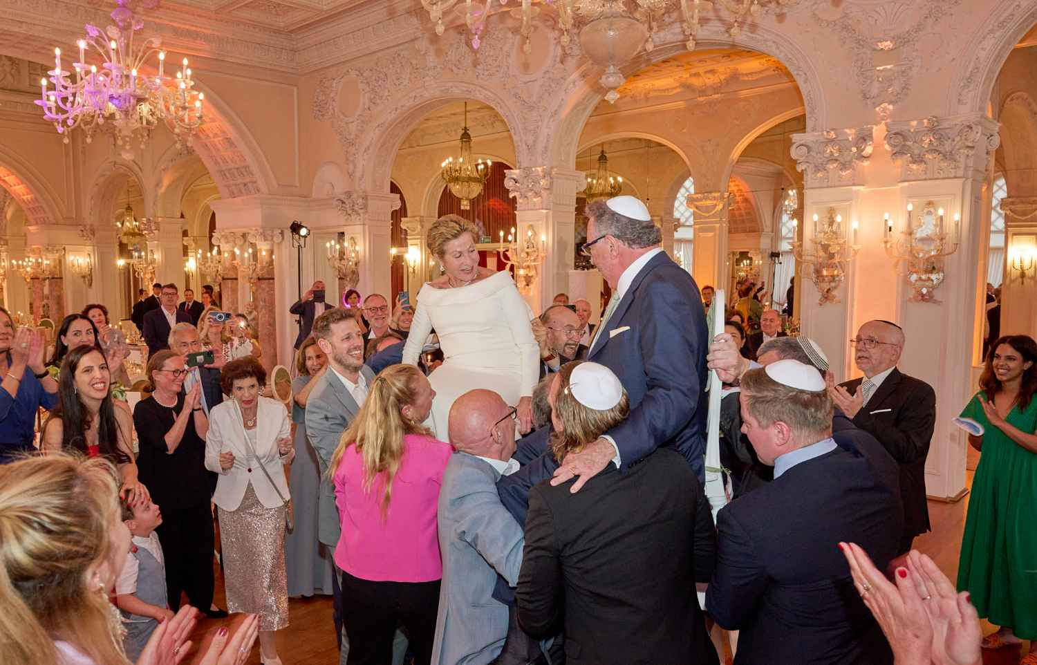 Anita Ammersfeld und Erwin Javor wurden nach 33 Jahren standesamtlicher Ehe in der Spanischen Synagoge im Venediger Ghetto nun auch noch „richtig“ getraut. Das Fest danach fand im eleganten Sala Stucchi im Hotel Excelsior am Lido statt. Eine bunte wie hochkarätige und gut gelaunte Gästeschar aus Israel, Österreich, den USA, Kanada und der Schweiz feierte das Paar ausgelassen, fröhlich und herzlich bis in die frühen Morgenstunden.